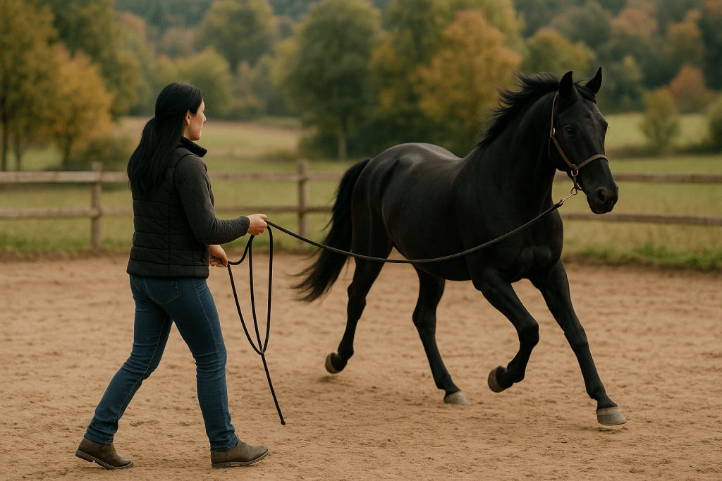 An diesem Tag erzählte ich Sarah von unserem kleinen Langzeitproblem. Sie nahm sich Manas und die Longe – und ich weiß nicht, ob sie heimlich ein paar Zauberformeln gemurmelt hat – aber nach nicht mal dreißig Minuten lief mein Pferd wie ein Profi an der Longe. Als hätte er nie etwas anderes gemacht. Ich war begeistert. Und ehrlich gesagt: ein bisschen ehrfürchtig.