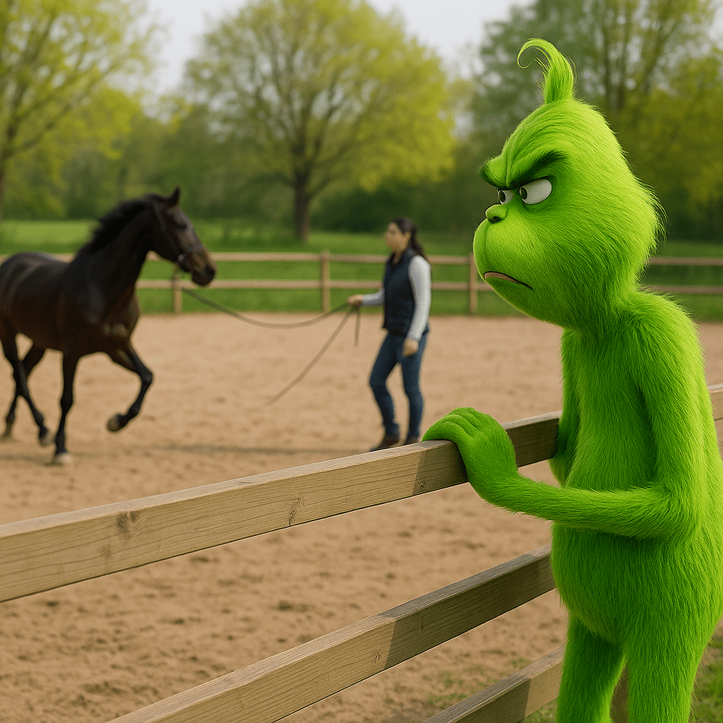 Während wir noch konzentriert weiterarbeiteten, betrat der Grinch den Reitplatz.